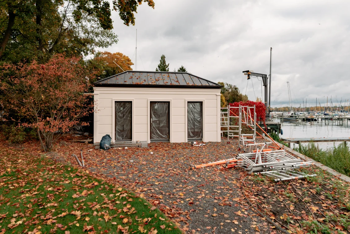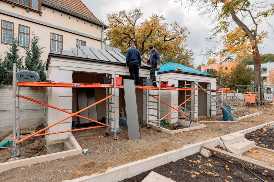 Die Arbeiten an den Stehfalzdächern des Bootshauses und der Fahrradhäuser schreiten weiter voran. Gleichzeitig hat die Beschichtung der Tiefgarage begonnen. Zudem wurde die Steuerung der Rampenheizung installiert – ein weiterer Schritt in Richtung technischer Fertigstellung.