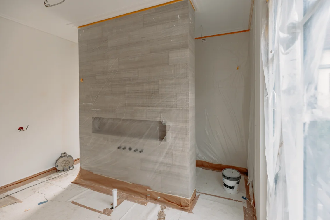 Im Außenbereich sind die maßgefertigten, abgerundeten Kantensteine aus Vratza angekommen und montiert. Sie bilden den gestalterischen Mittelpunkt des zukünftigen Vorgartens.