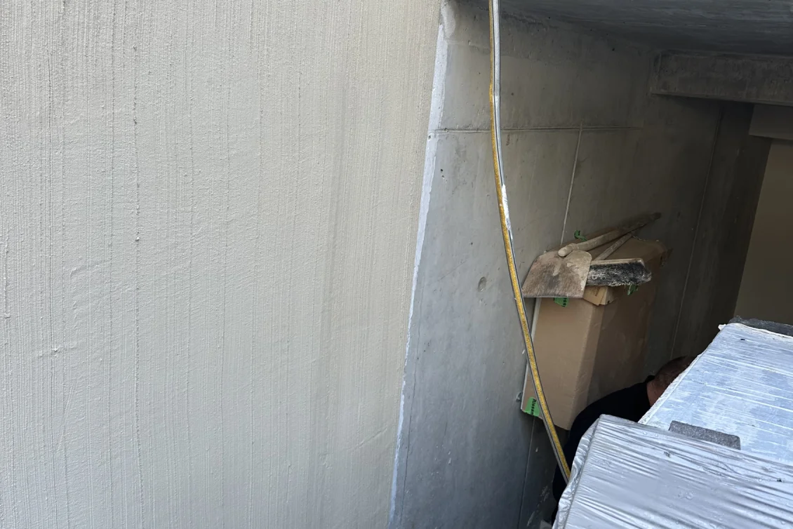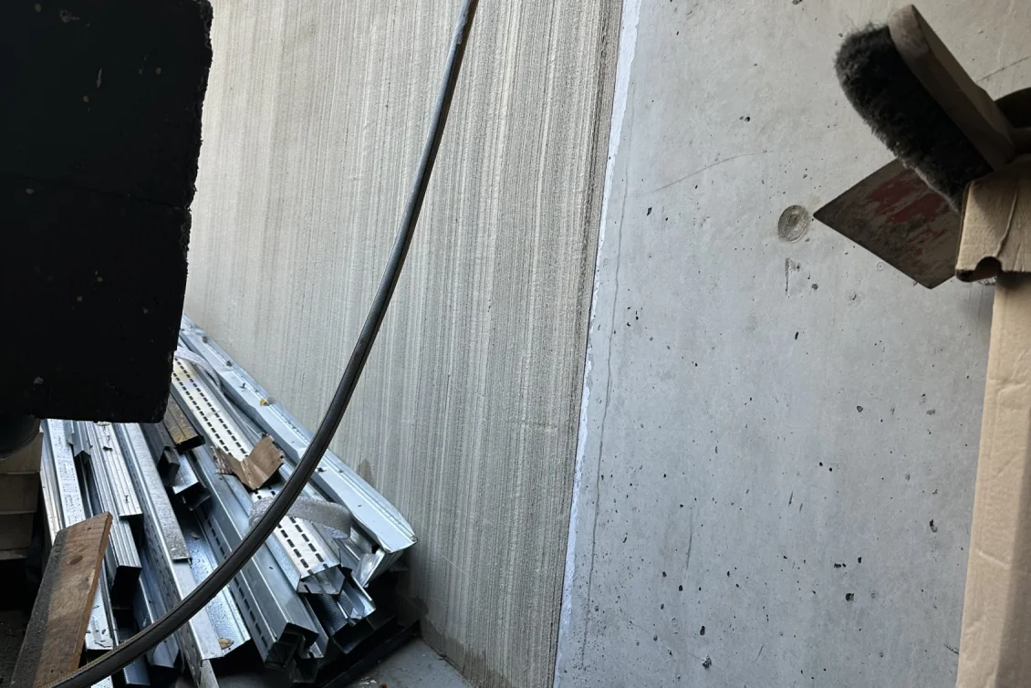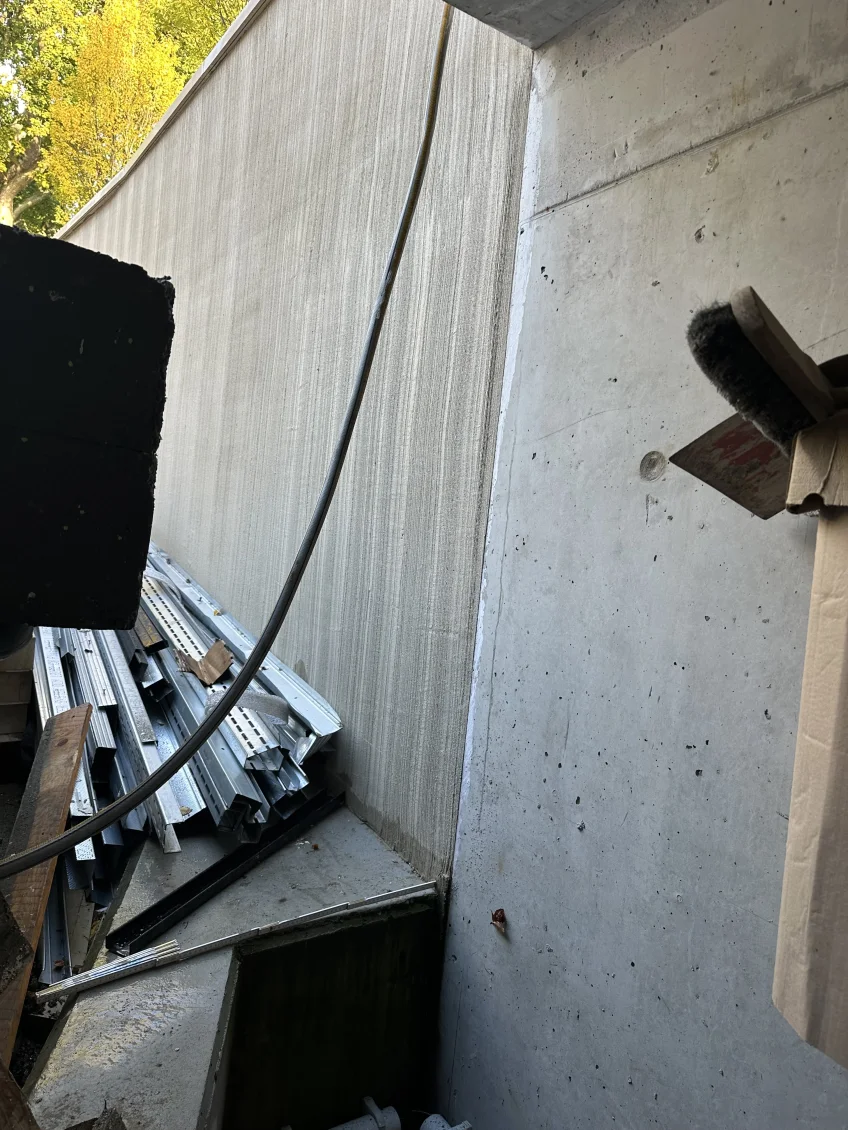 Der erste Metallhandlauf wurde im Treppenhaus montiert – seine Farbgebung fügt sich harmonisch in das Gesamtfarbkonzept des Hauses ein. Auch das neue Garagentor überzeugt durch eine abgestimmte Farb- und Formensprache. In der Tiefgarage erfolgte die Beräumung, um die Flächen für die anstehende Beschichtung in KW 41 vorzubereiten.