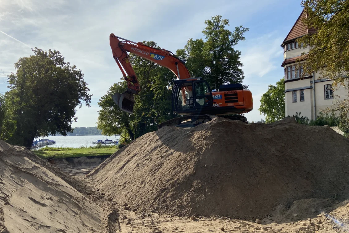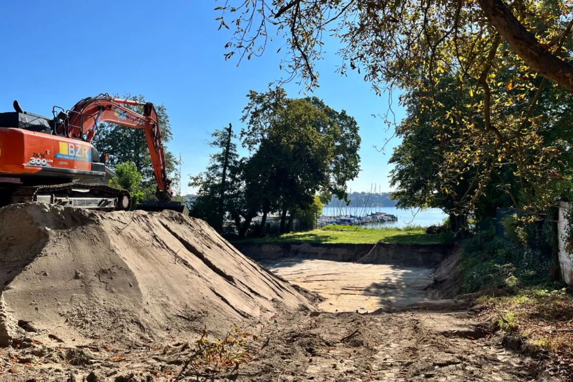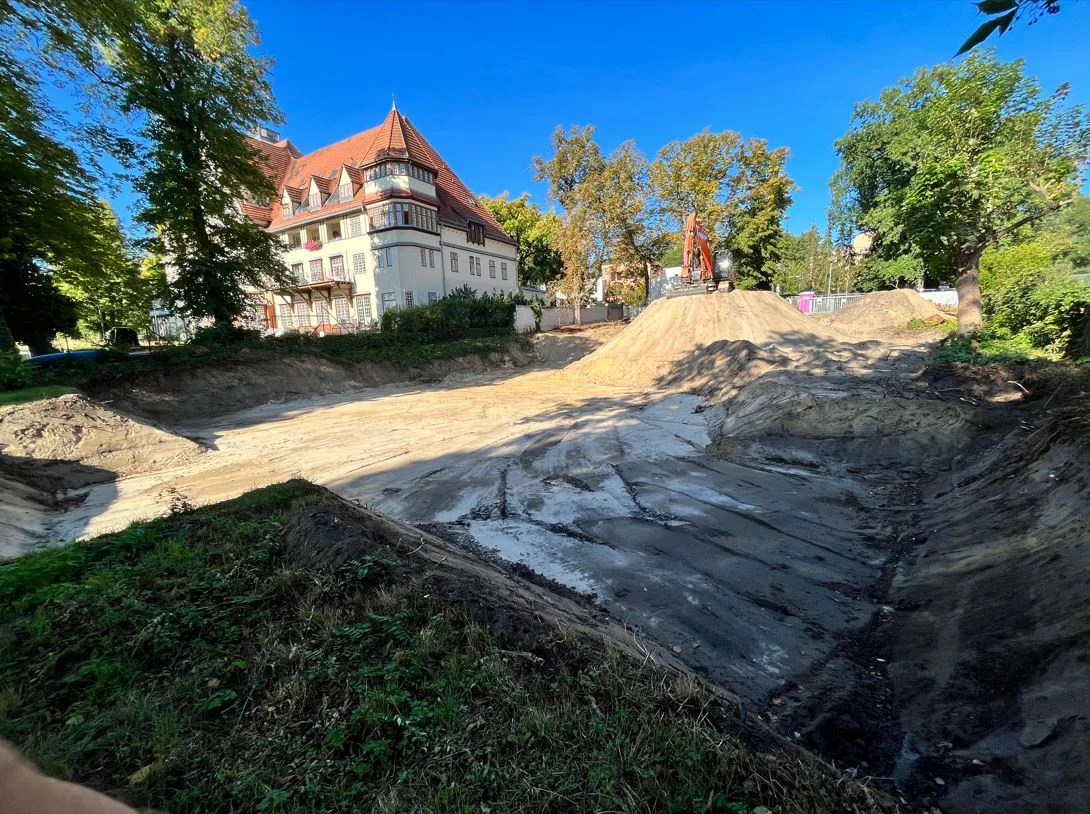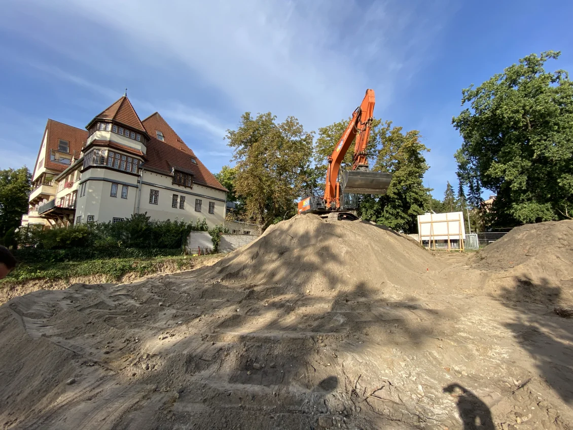 Der Baubeginn ist erfolgt und die Baugrube wird auf ca. 1.000 qm Grundfläche bis zu einer Tiefe von annähernd 4 m angelegt. Bevor über 2.000 m³ Boden abgefahren werden können, sind mehrere Bodenanalysen erforderlich, um eine umweltverträgliche Verwendung sicherzustellen.