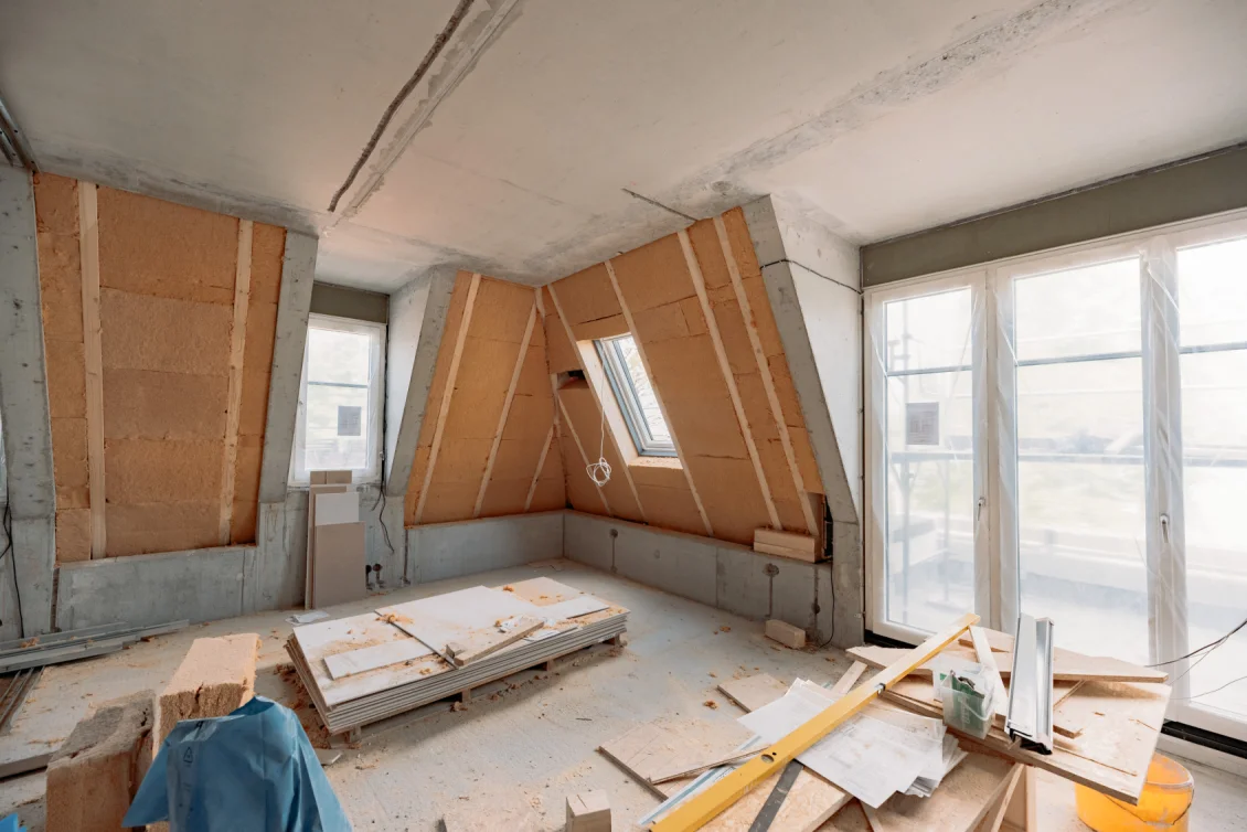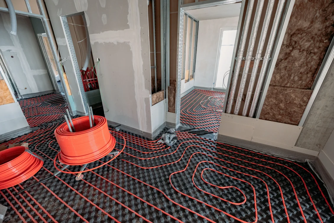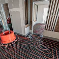 Für ein angenehmes Raumklima und maximale Behaglichkeit ist mit der Fußbodenheizung gesorgt. Diese wird in sogenannten Heizschlangen verlegt und anschließend mit Estrich übergossen und geglättet. Jetzt fehlt nur noch der Bodenbelag und wir haben unsere lichte Raumhöhe von 2,87m erreicht.