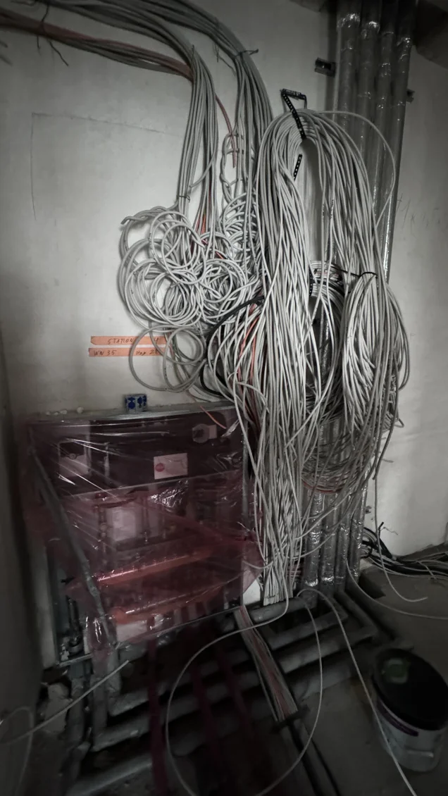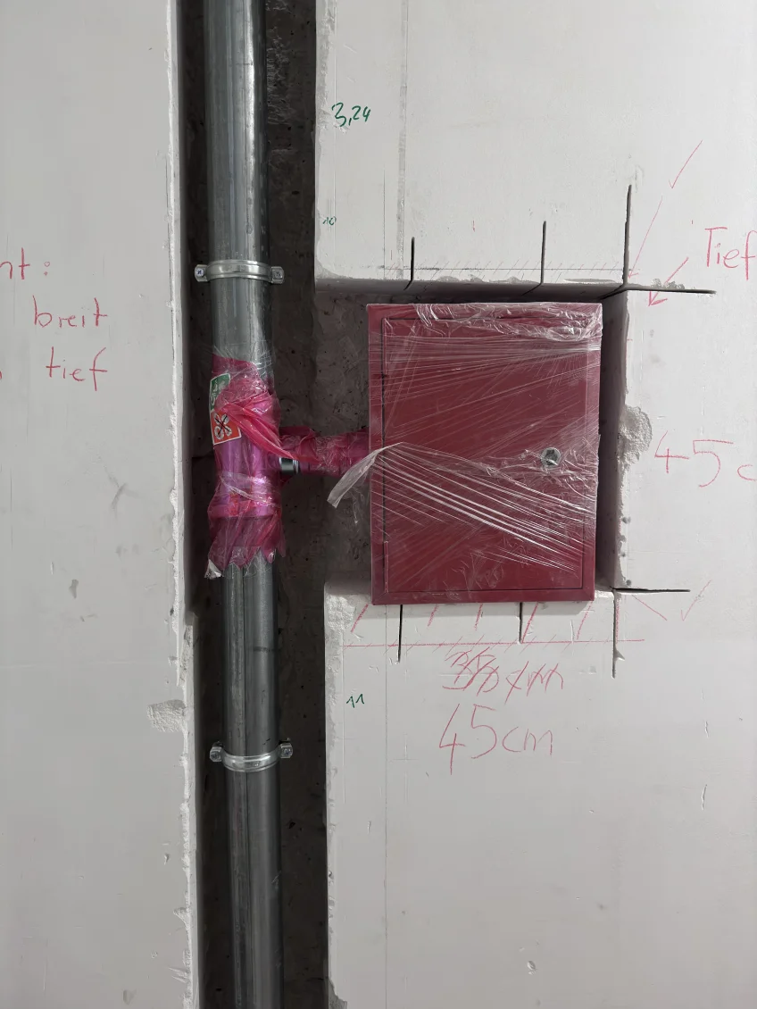 Kaum zu glauben, dass für die Elektroinstallationen insgesamt etwa 15 km Kabel verlegt wurden. Weiter geht es mit der sogenannten trockenen Steigleitung, die einen essentiellen Bestandteil des Brandschutzsystems des Gebäudes darstellt. Inzwischen haben außerdem die Arbeiten an der Fassade begonnen und wir warten gespannt darauf, dass auch die Gebäudehülle weiter Gestalt annimmt.
