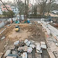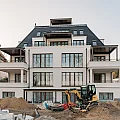 Die Terrassentreppe aus Natursteinbelag, die den Außenbereich mit dem Garten verbindet, nimmt zunehmend Gestalt an und wird bald einen stilvollen Übergang zwischen Innen- und Außenbereich schaffen.