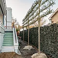 Gleichzeitig sorgen entlang der Grundstücksgrenze neu gepflanzte, formgeschnittene Bäume für Struktur und mehr Privatsphäre – ein weiterer Schritt zur Vollendung des gesamten Ensembles.