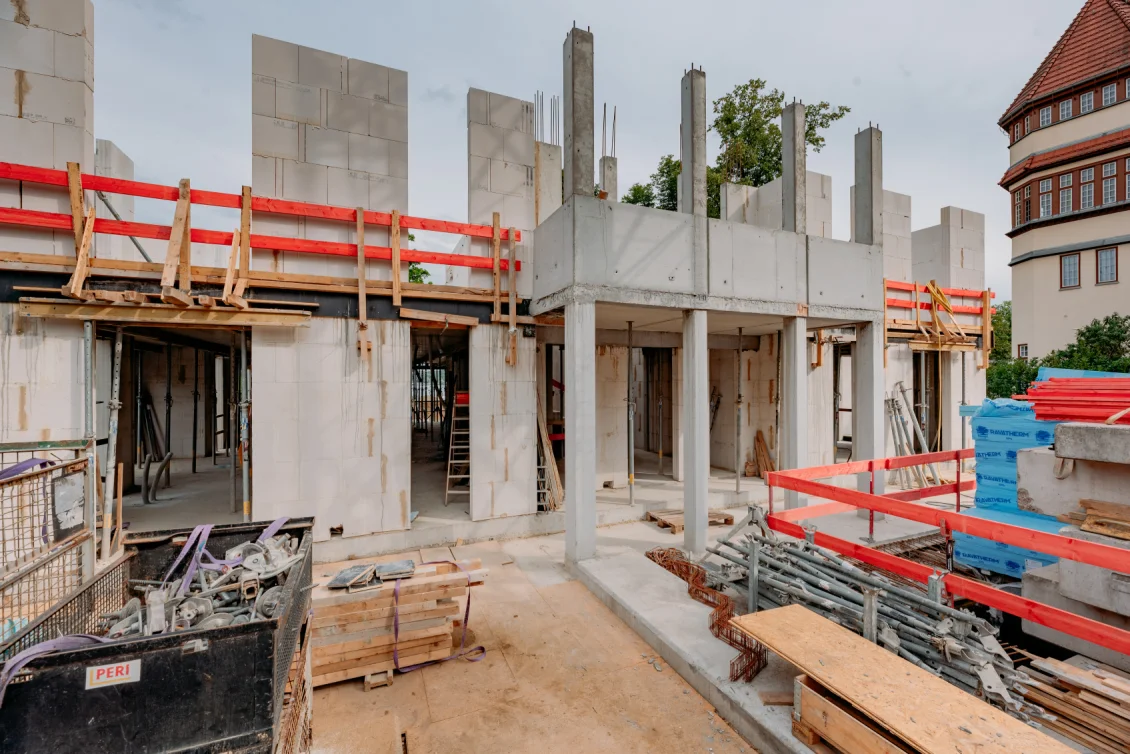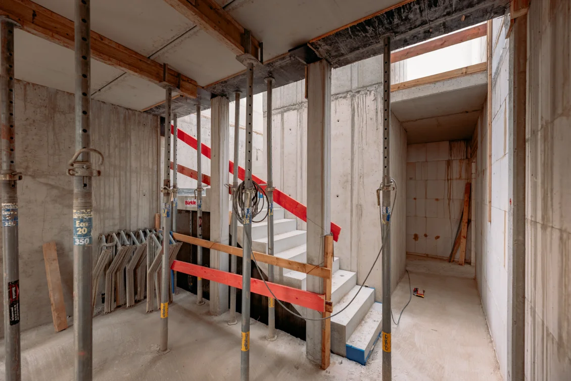 Das einladende und großzügige Entré der Villa “Belle Rive” zeigt sich bereits im Rohbau. Die Geschosstreppen sind großzügig dimensioniert.