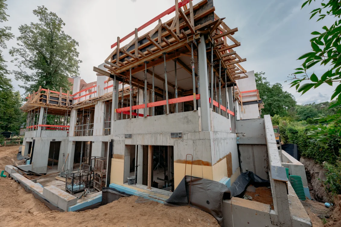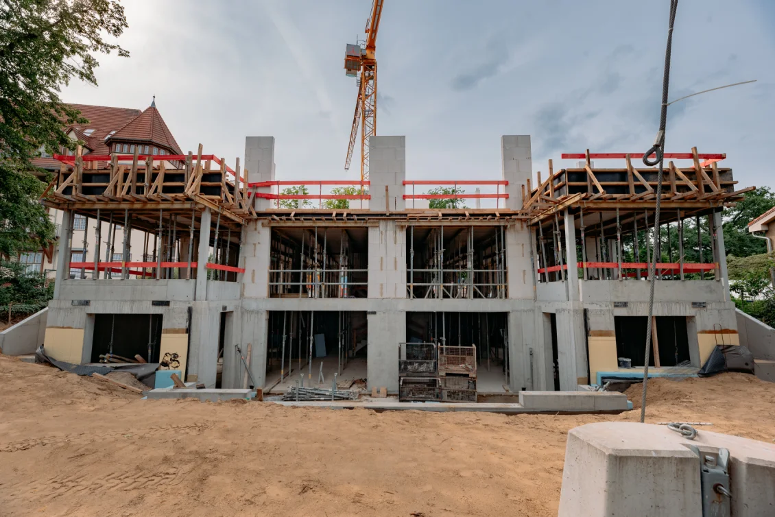 Auf der Seeseite des Gebäudes können jetzt die großen Terrassen und Loggien eingeschalt werden. Aus dem “Erdgeschoss” wird seeseitig die “Belle Etage” mit direktem Zugang in den Privatgarten.