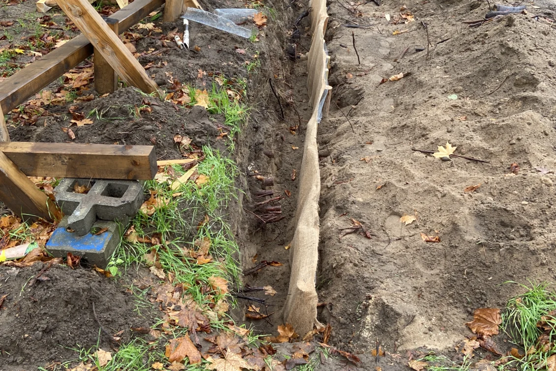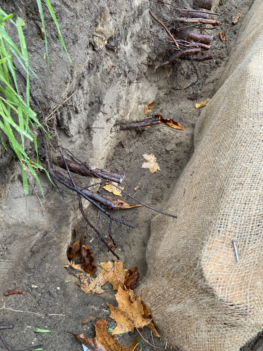 Wurzeln im Bereich der Baugrube werden per Hand freigelegt und sauber beschnitten. Die Vitalität der betroffenen Wurzeln wird durch einen sogenannten Wurzelvorhang mit geeigneten Substraten aufrechterhalten.