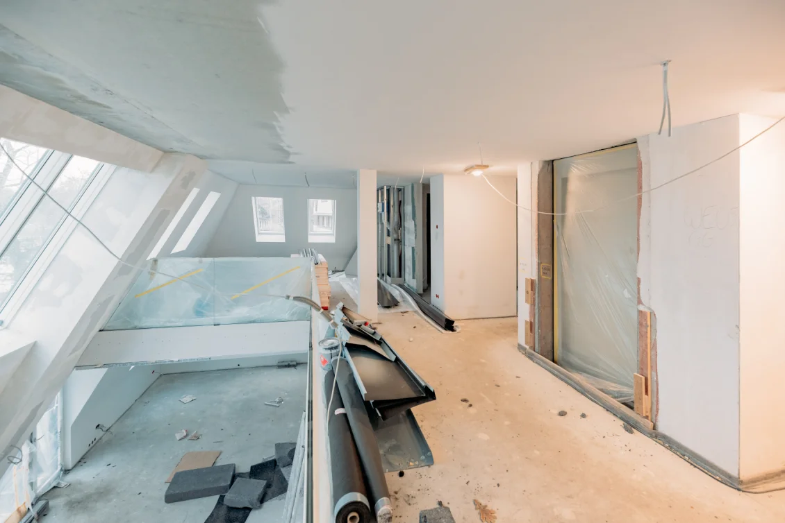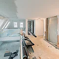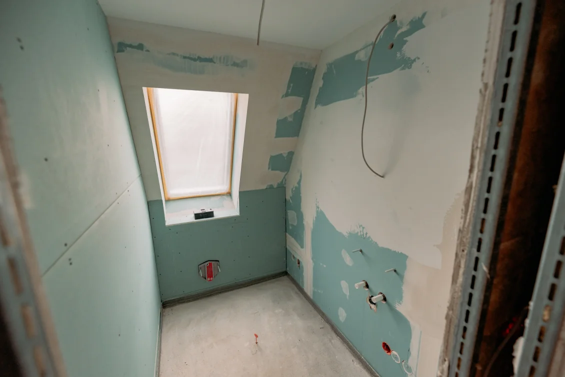 Der Innenausbau kommt mit großen Schritten voran. Die letzten Öffnungen der Trockenbauwände werden geschlossen und Decken und Wände gespachtelt und beschichtet. Es ist spannend zu beobachten, wie aus der Baustelle nach und nach wohnliche Räume entstehen.