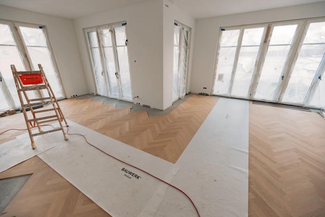 Die Parkettböden werden individuell auf das Design jeder Wohnung abgestimmt. Mit siebenfacher Beschichtung und stumpfmatter Oberfläche erfüllen die verwendeten Naturprodukte höchste nachhaltige Ansprüche und tragen so zu einem umweltbewussten sowie strapazierfähigen Fußbodenbelag bei.